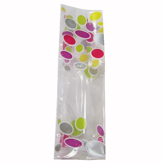 Blokbodemzak 60 + 50 x 200mm met bolletjes opdruk.