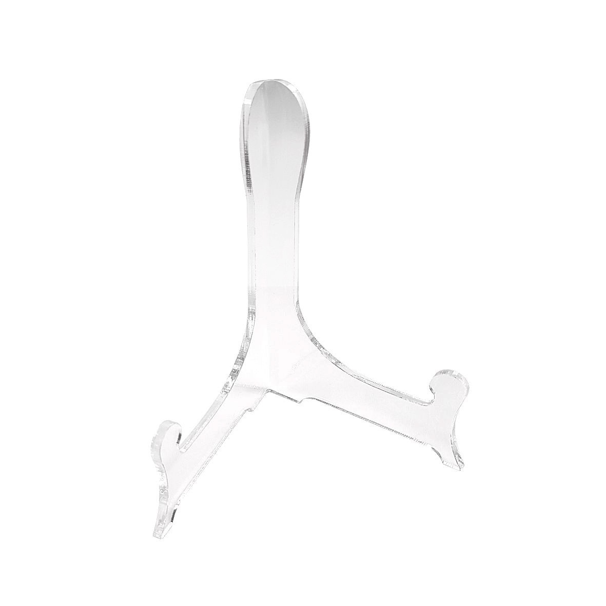 Bordenstandaard acryl klein, zonder scharnier. De hoogte van de standaard is 11cm. De verhogingen van het pootje is ca. 15mm.