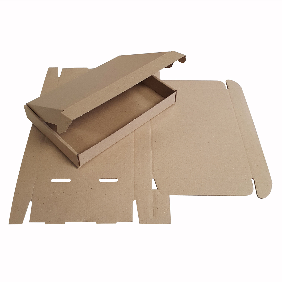 Bruin, kartonnen brievenbusdoosje, zonder opdruk. Onbedrukte doosjes die zelf gevouwen moeten worden.