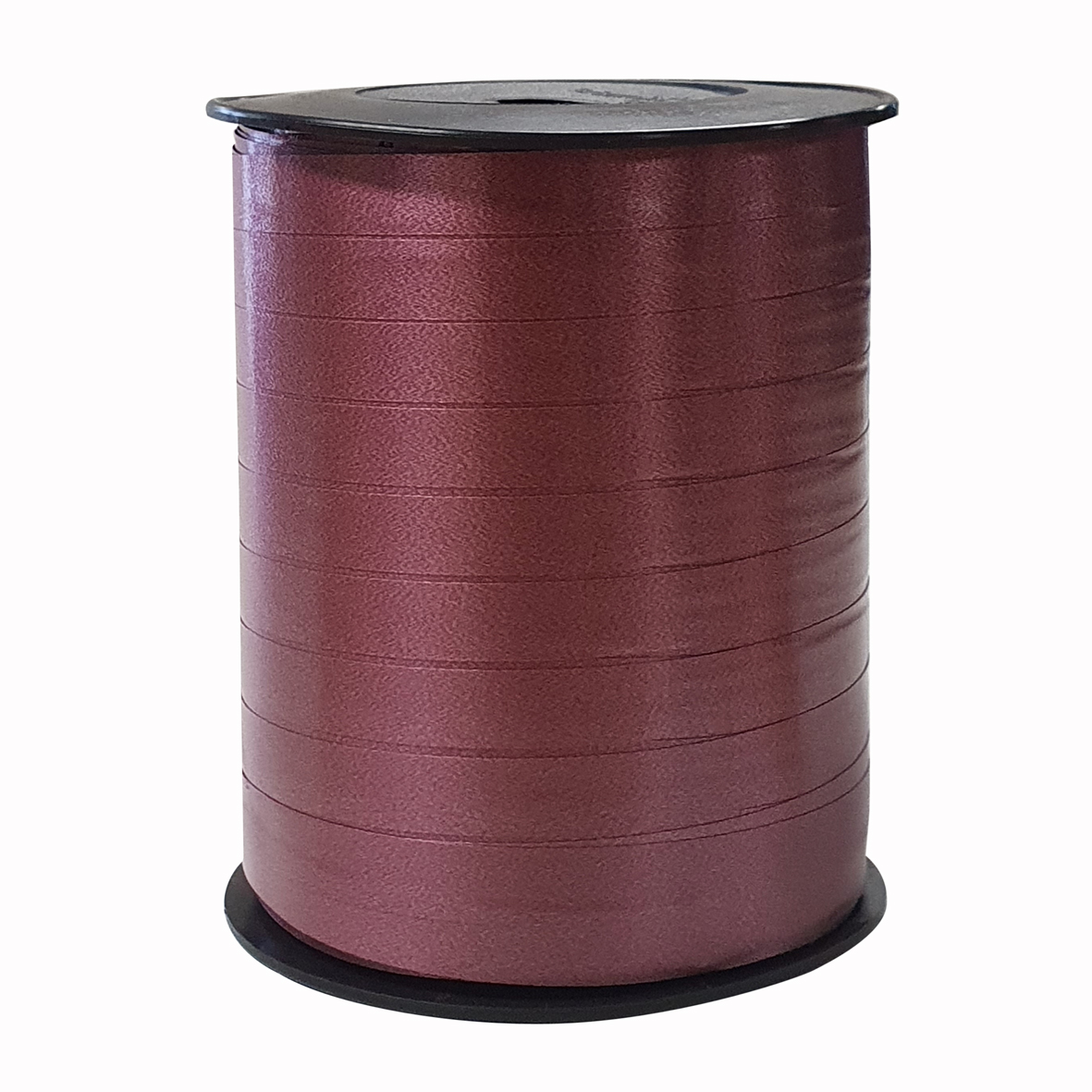Bordeauxrood krullint onbedrukt, het lint is 10mm breed en de totale lengte van de spoel is 250 meter.