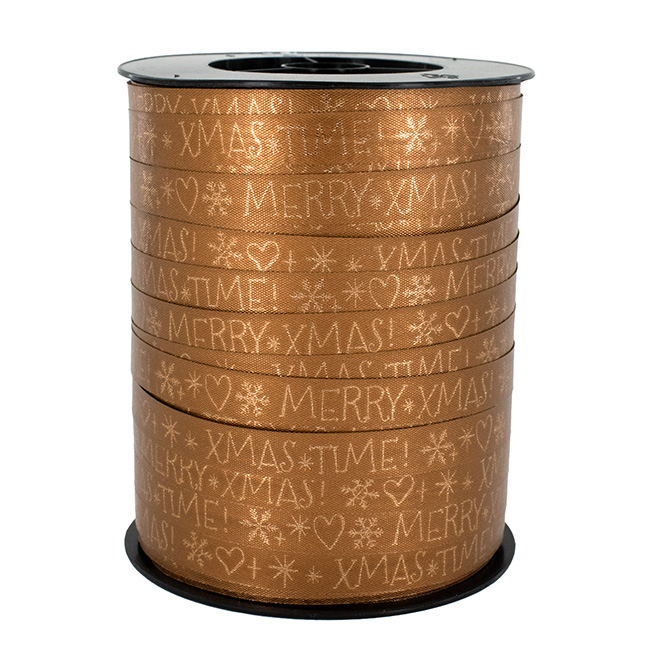 Cadeaulint brons goud 10mm x 250 meter Merry XMas, X-Mas Time.