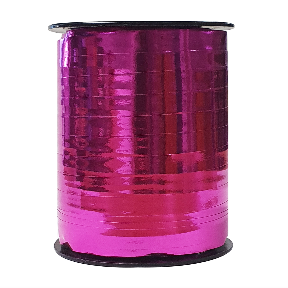 Metallic fuchsia krullint van 10mm breed, de totale lengte van de spoel is 250 meter.