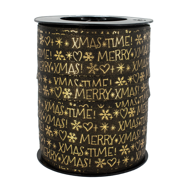 Cadeaulint zwart goud 10mm x 250 meter Merry XMas & X-Mas Time.