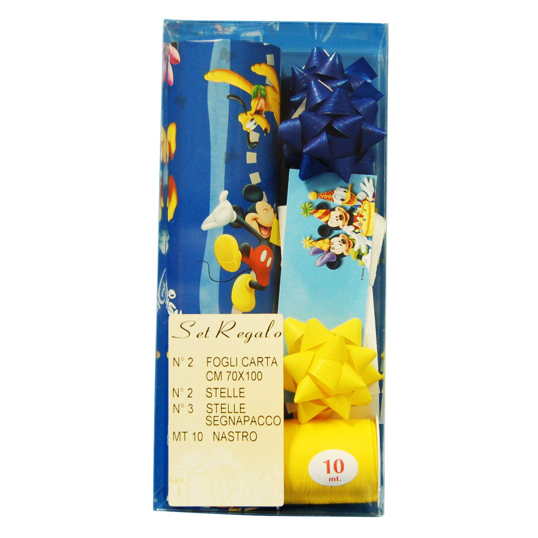 Cadeauverpakkingsset Disney kerst, 2 vellen van 70x100cm, 2 starbows 14mm, 3 starbow tags, 1 mini spoel 10mm x 10 meter