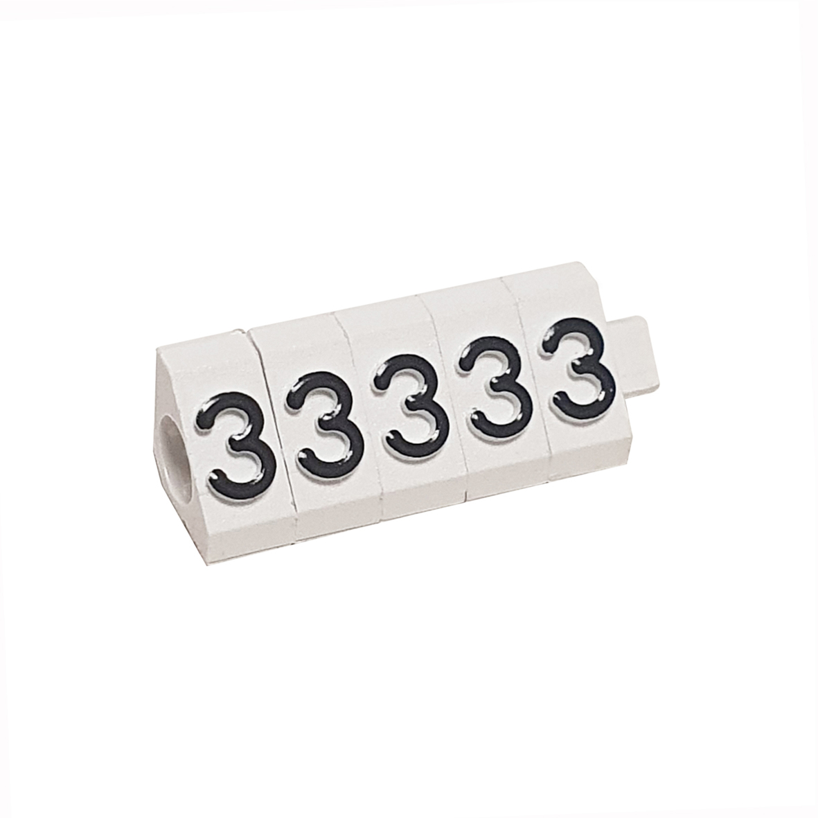 Cijfer 3 in zwarte kleur op een witte achtergrond, Compact 1302 prijsblokjes per 20 stuks.