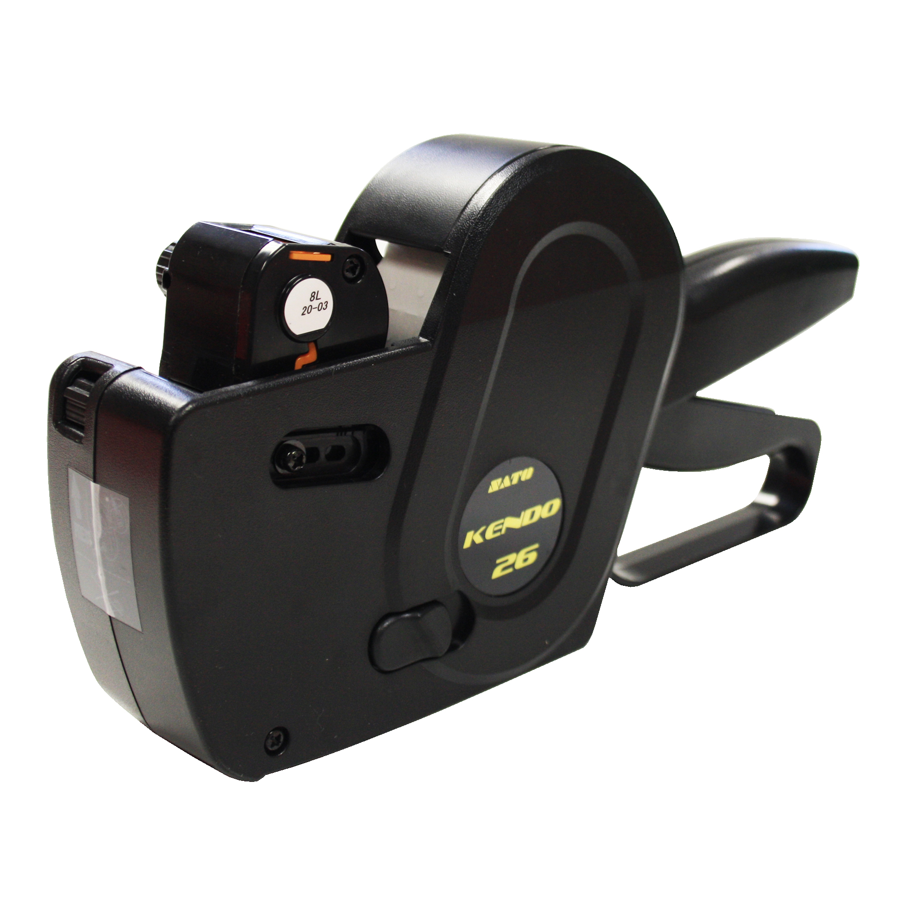 De tang is zwart en geschikt om prijzen op etiketten en artikelen te labelen.