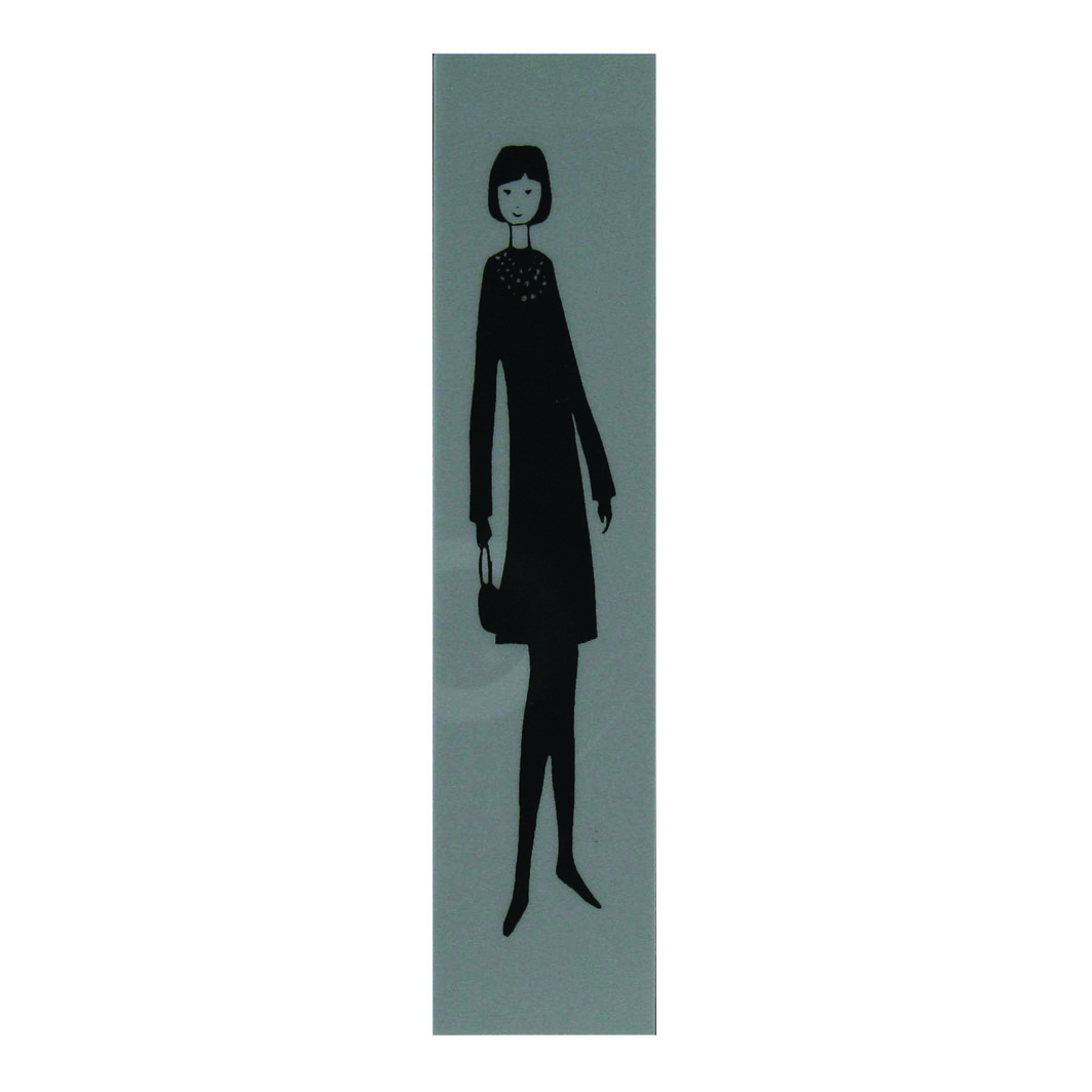 Deurplaatje figuur vrouw grijs/zwart. De afmeting is 21x4cm.