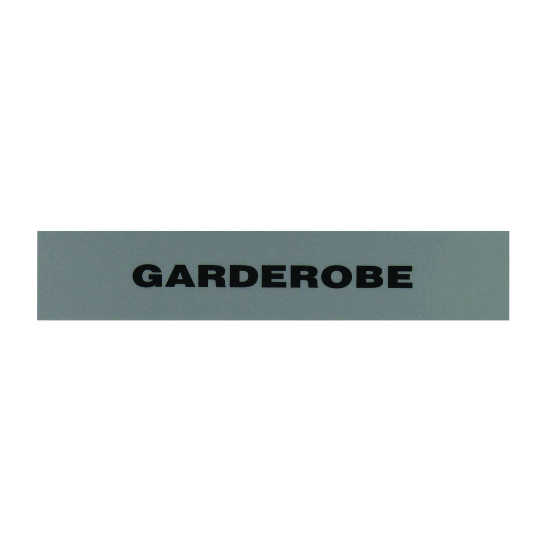 Deurplaatje GARDEROBE grijs/zwart. De afmeting is 21x4cm.