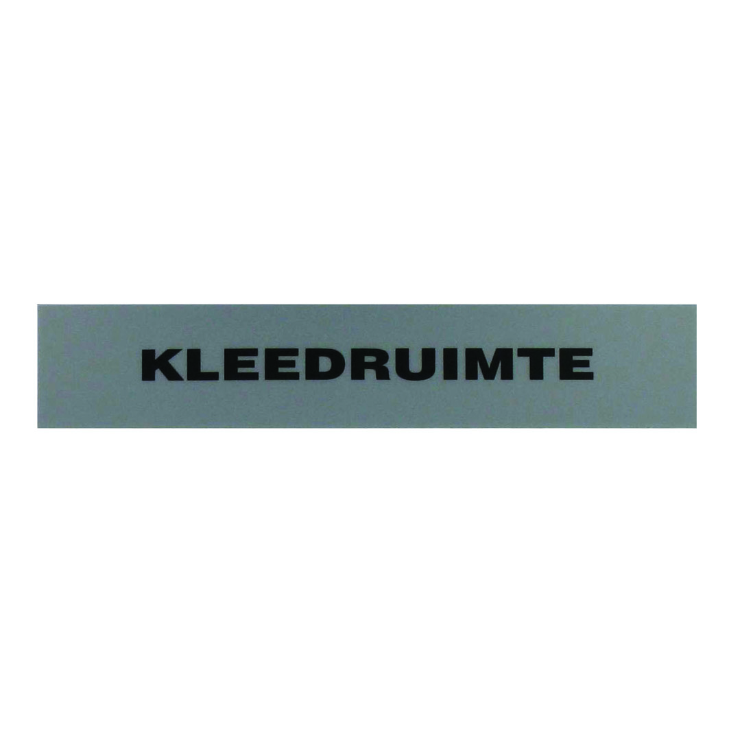 Deurplaatje KLEEDRUIMTE grijs/zwart. De afmeting is 21x4cm.