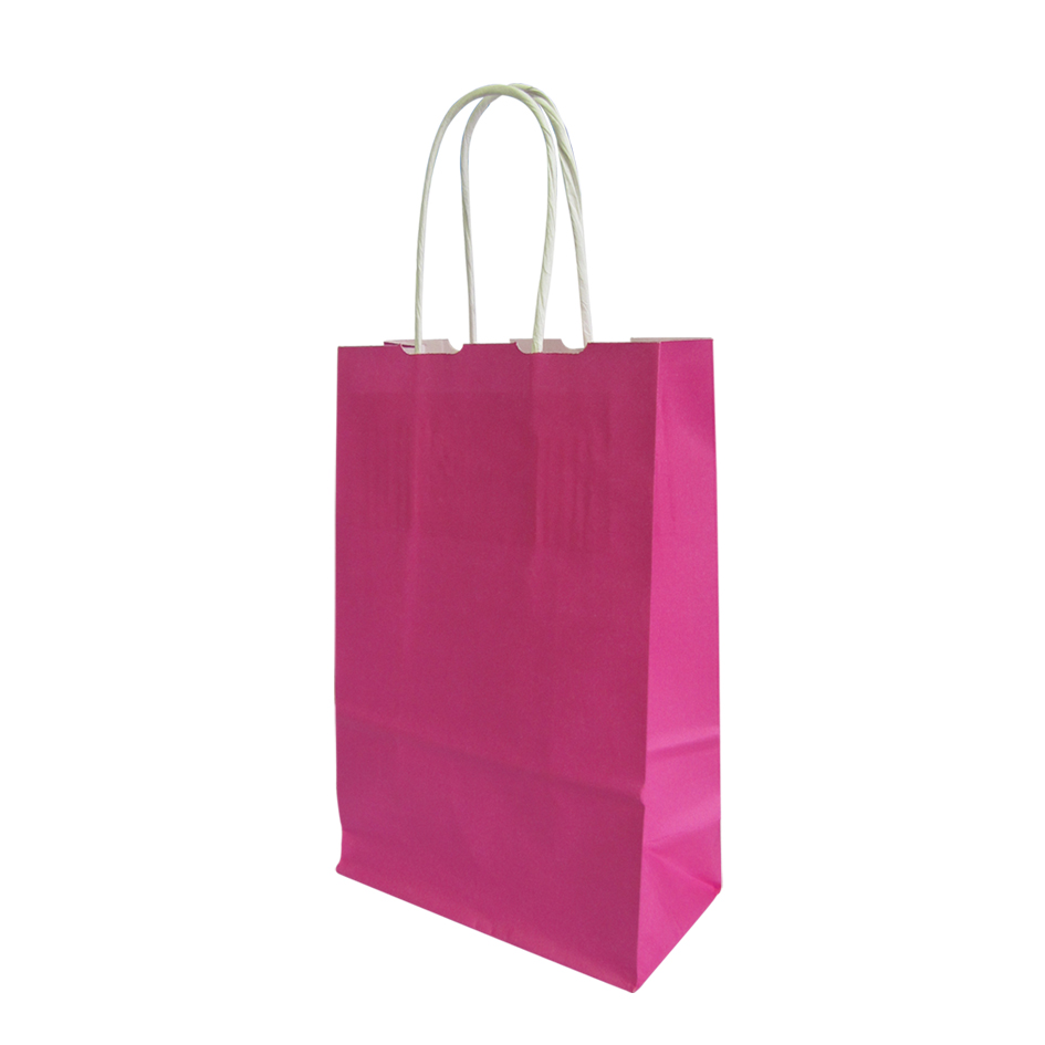 Draagtas roze papier 14×42+32cm met gedraaide handgrepen in het wit.