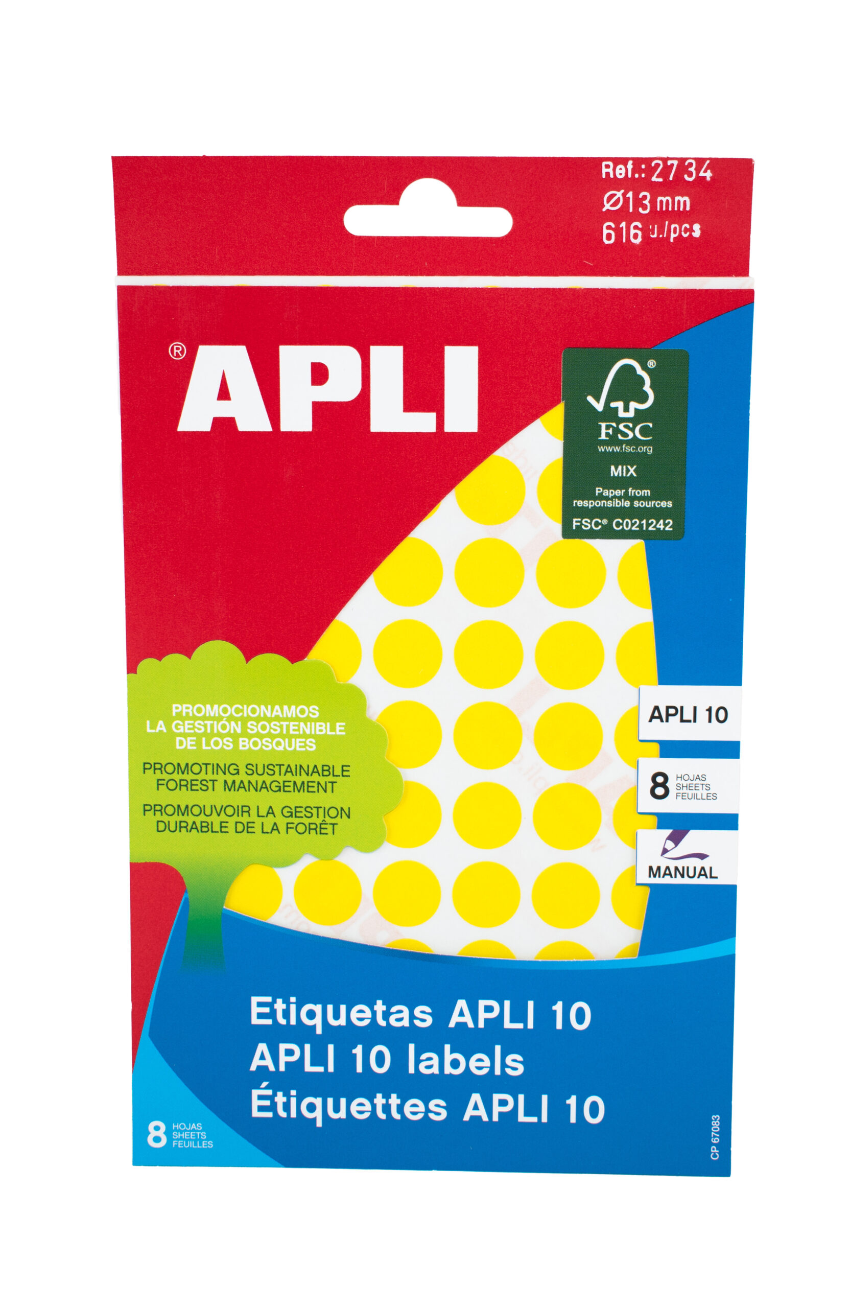 Etiket 13mm geel Apli 02734, per 616 stuks.