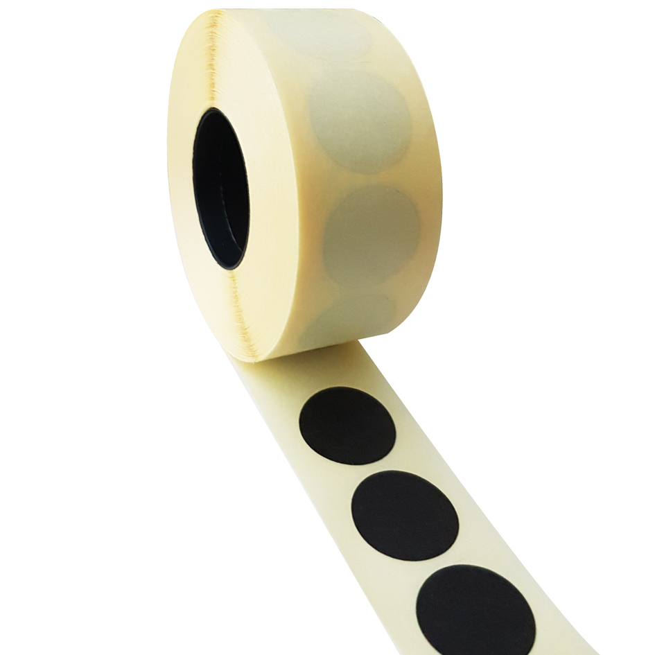De etiketten hebben een diameter van 17mm, bevatten een permanente kleefkracht en zitten met 1000 stickers op een rol.