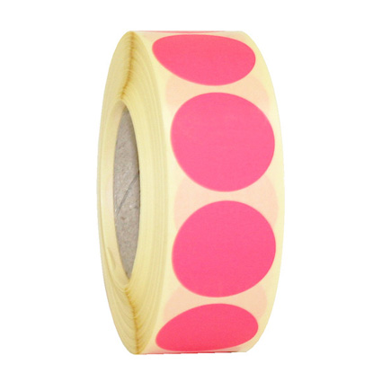 Ronde etiketten in fluorescerend roze zonder bedrukking en zijn onder andere geschikt voor het beprijzen of groeperen van artikelen.