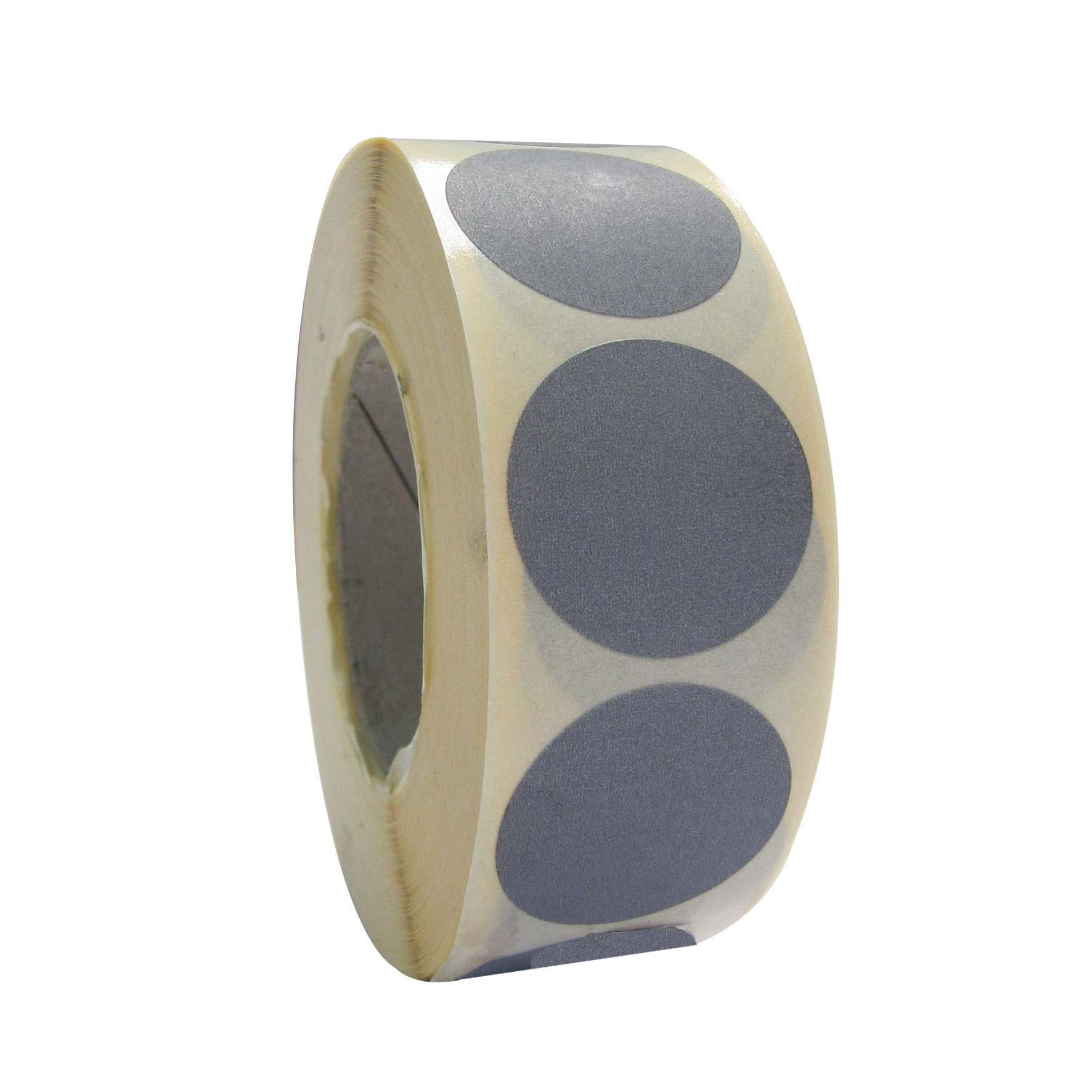 Ronde etiketten in het grijs zonder bedrukking en zijn onder andere geschikt voor het beprijzen of groeperen van artikelen.