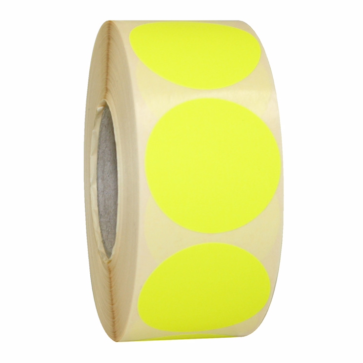 Ronde etiketten in fluorescerend geel zonder bedrukking en zijn onder andere geschikt voor het beprijzen of groeperen van artikelen.