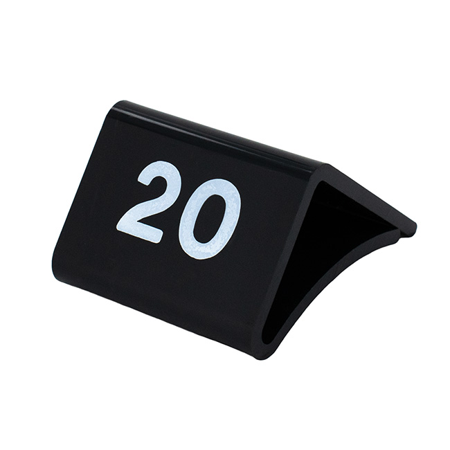Maatbordje in het zwart met witte opdruk voor maat 20. De maatbordjes worden bijvoorbeeld gebruikt bij schoenwinkels, maar ook om locaties in een magazijn te categoriseren.