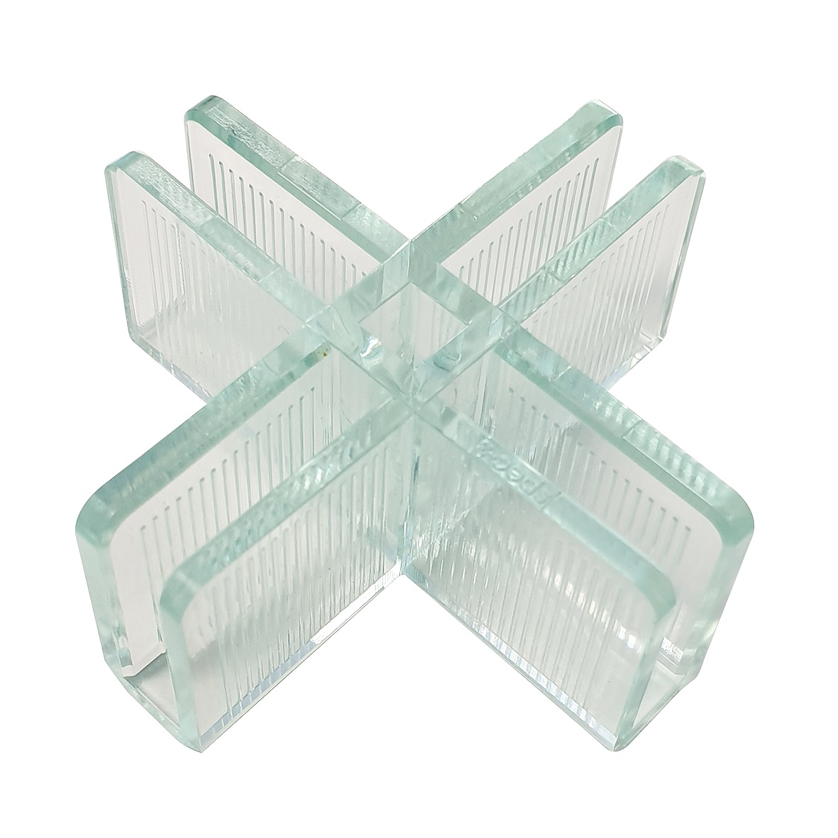 Glasplatenverbinder in een kruisvorm, geschikt voor vier (glas)platen.