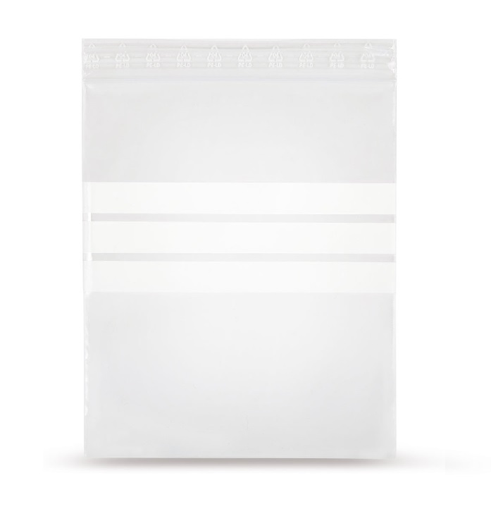 Gripzak 160x230mm met schrijfvlakken en rond gat. Verkrijgbaar per 100 stuks.