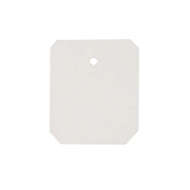 Witte labels zonder opdruk, de labels bevatten afgeronde hoeken en een gat om ze op te kunnen hangen.