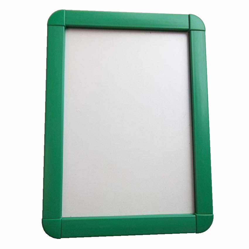 Kliklijst A4 kunststof groen 35mm ronde hoeken, groene lijst van kunststof die geschikt is om aanbiedingen in te presenteren.