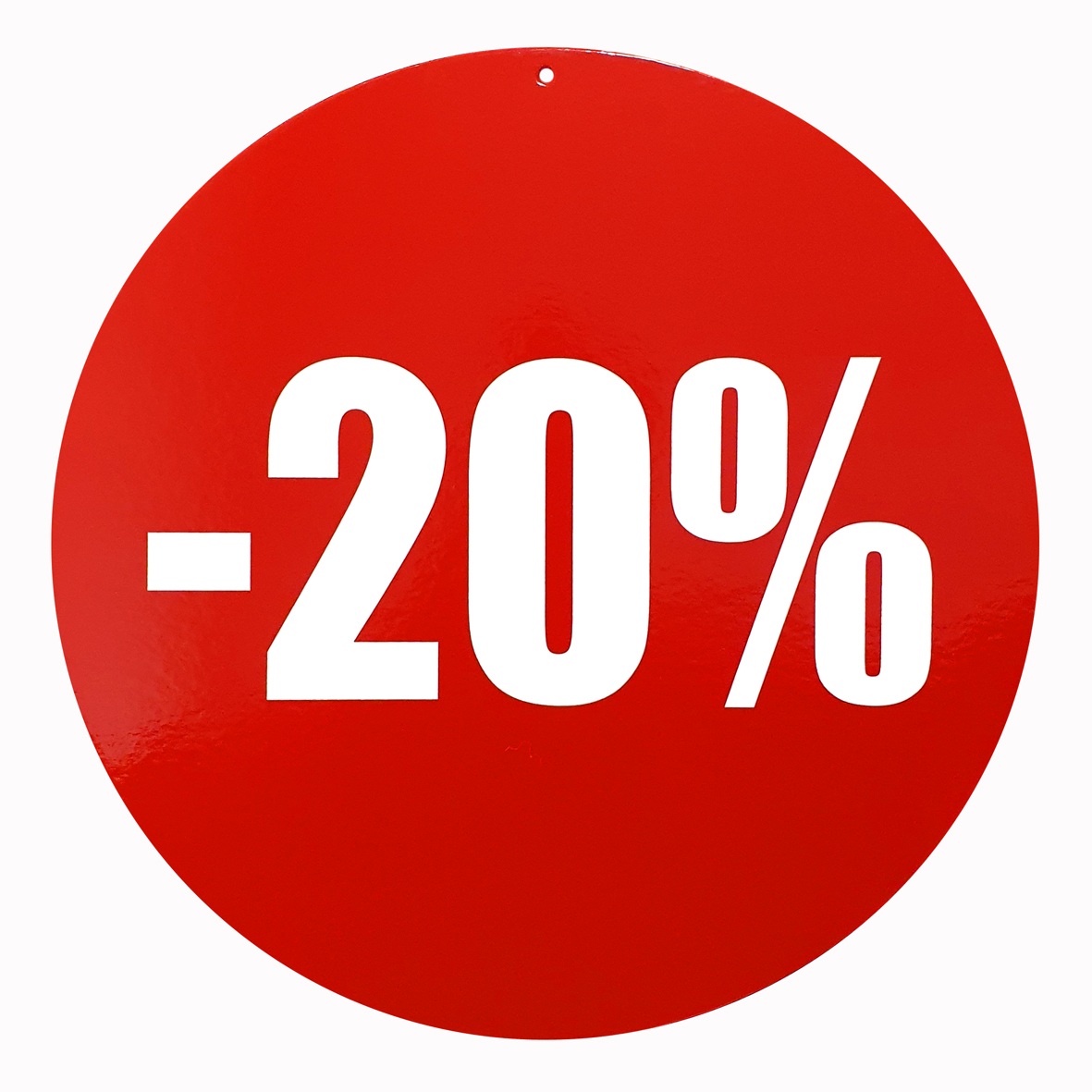 Kortingskarton 34cm rood bedrukt -20% witte opdruk.