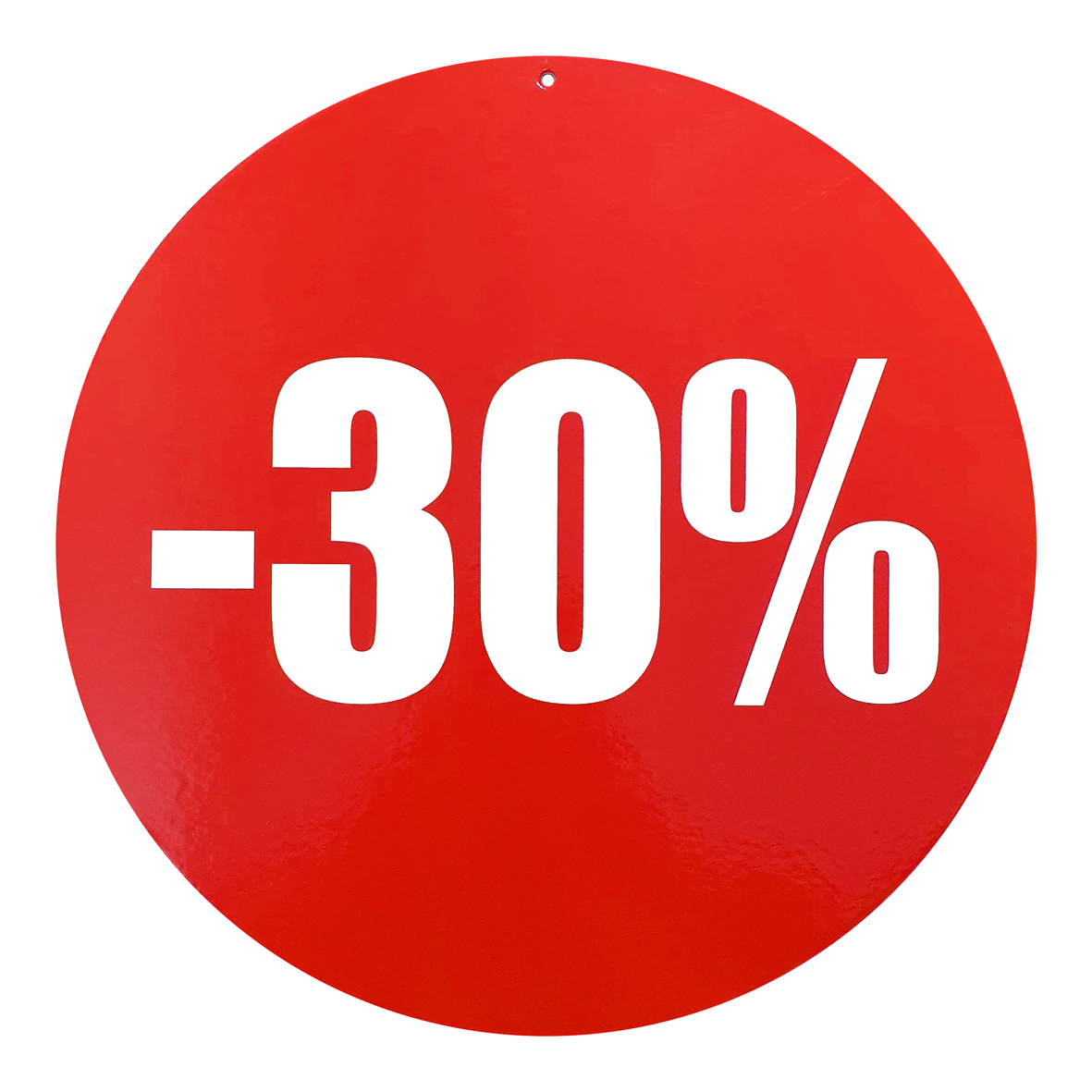 Kortingskarton 34cm rood bedrukt -30% witte opdruk.