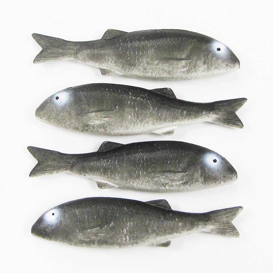 Decoratieve kunstvissen Poon in de kleur grijs, worden gebruikt als kunstvoedsel ter simulatie of opvulling van het decor in de klas of dierentuin.