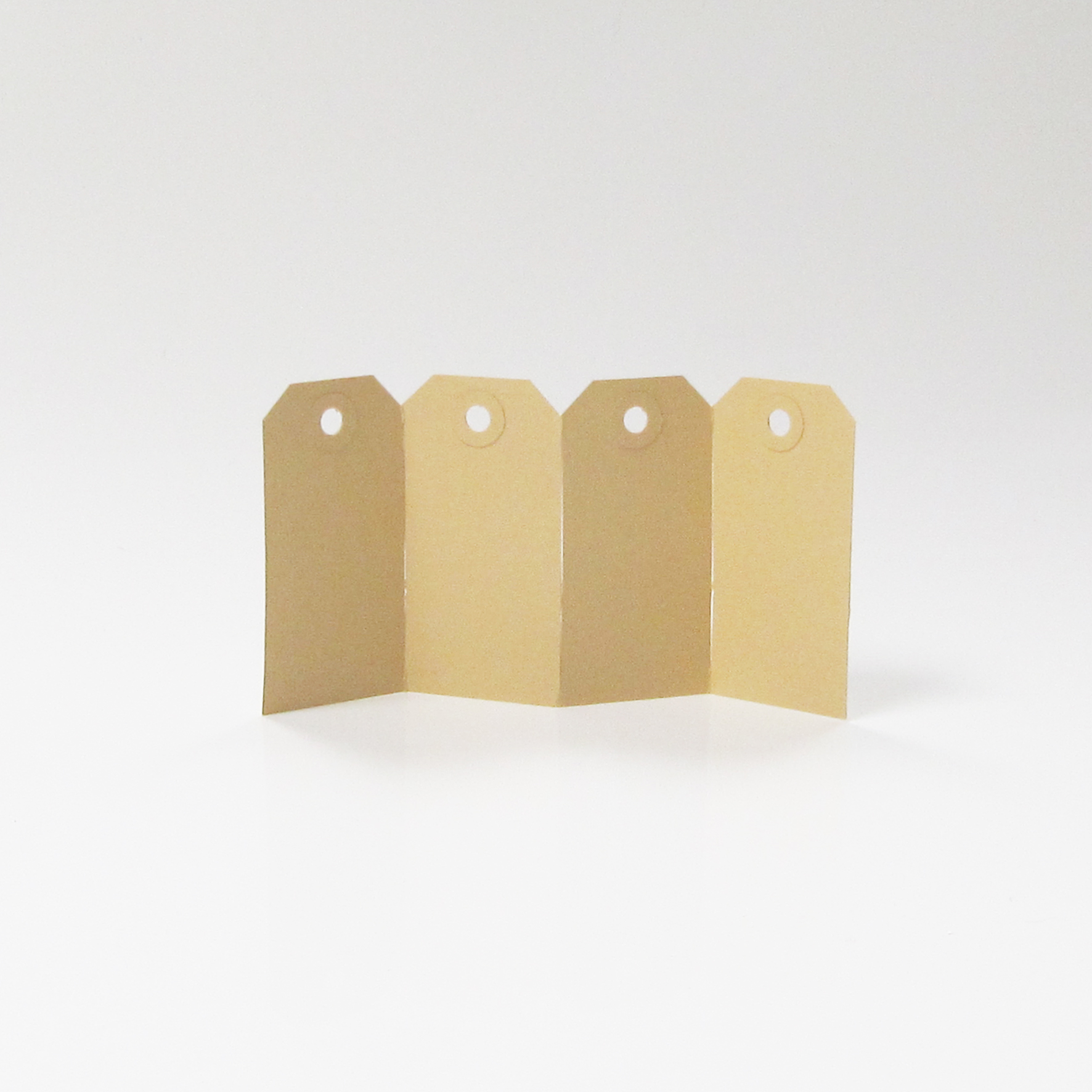De kartonnen labels worden bijvoorbeeld in de modebranche gebruikt, handig om de maat en prijs op te zetten.