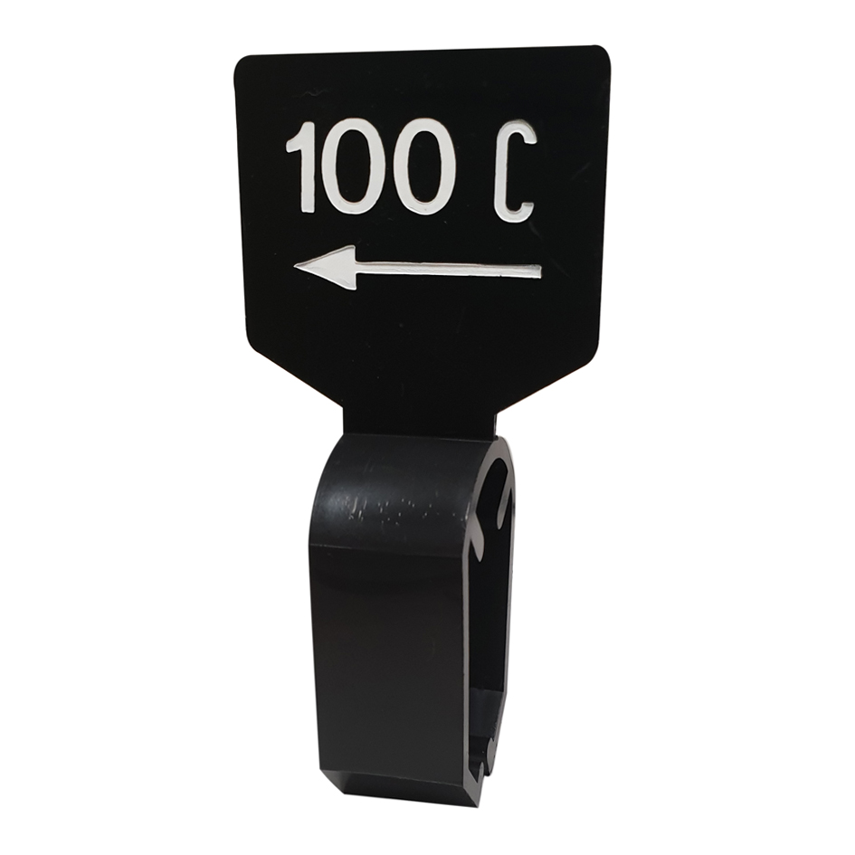 Maataanduider zwart wit 100C met pijl.