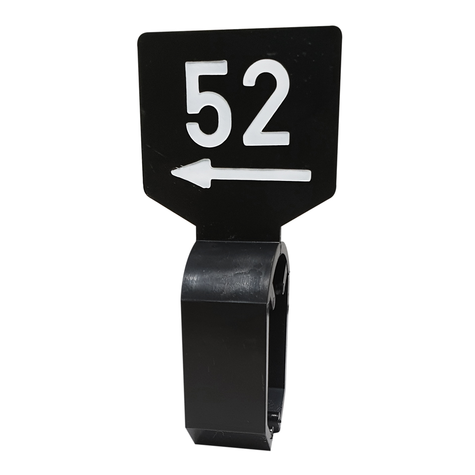 De maatbordjes zijn zwart met een witte opdruk 52 en zijn dubbelzijdig bedrukt.