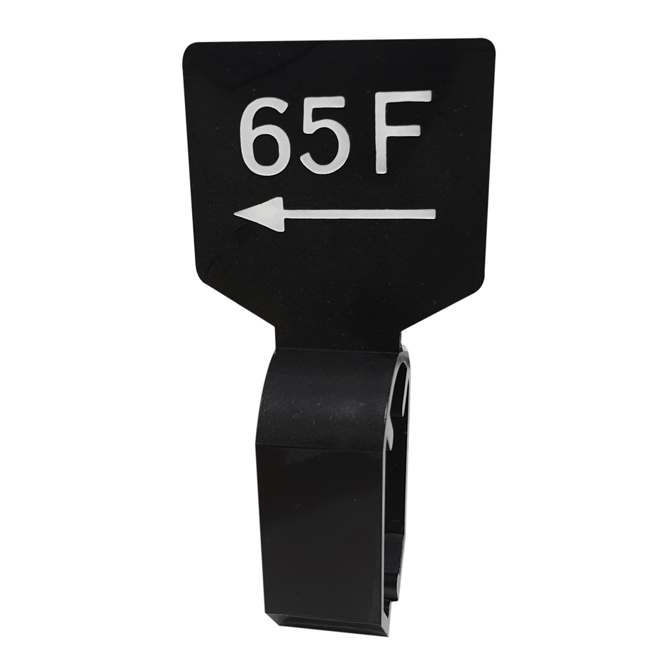 De maatbordjes zijn zwart met een witte opdruk 65F en zijn dubbelzijdig bedrukt.