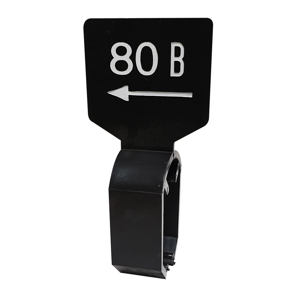 De maatbordjes zijn zwart en dubbelzijdig bedrukt met witte opdruk 80B.