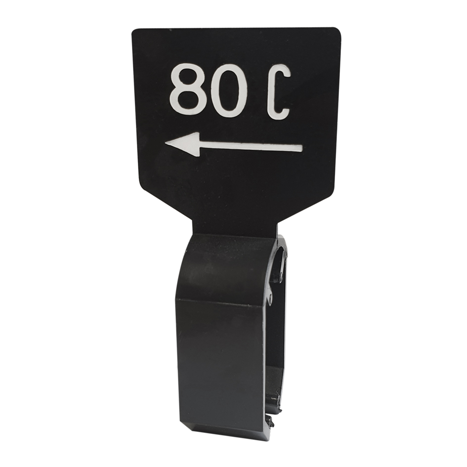 De maatbordjes zijn zwart en dubbelzijdig bedrukt met witte opdruk 80C.
