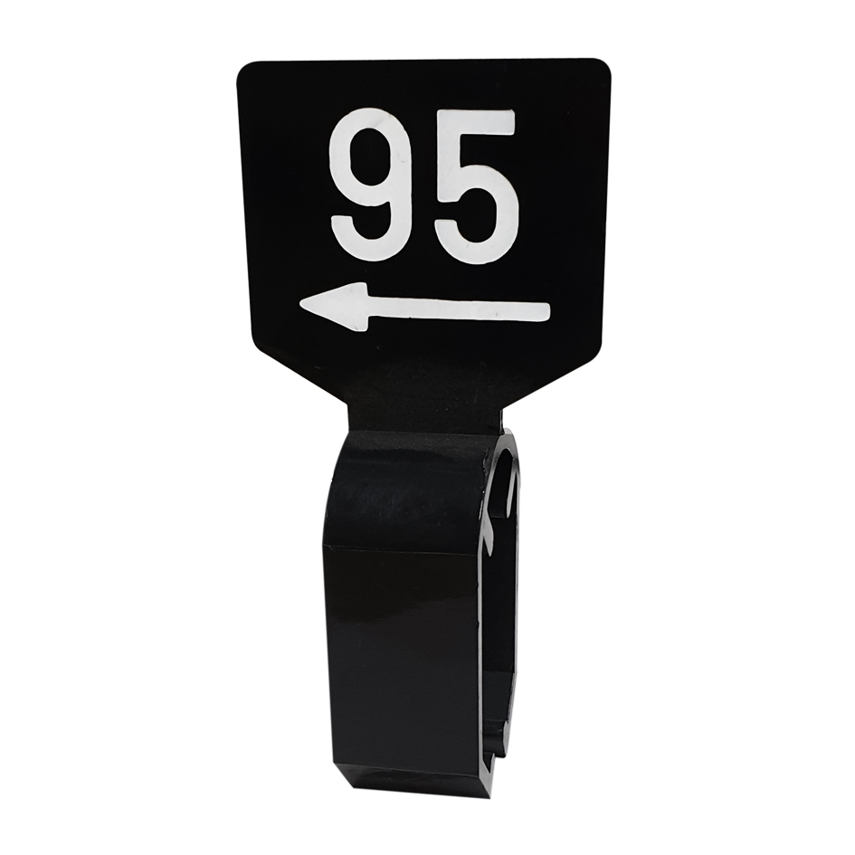 De maatbordjes zijn zwart en dubbelzijdig bedrukt met witte opdruk 92.