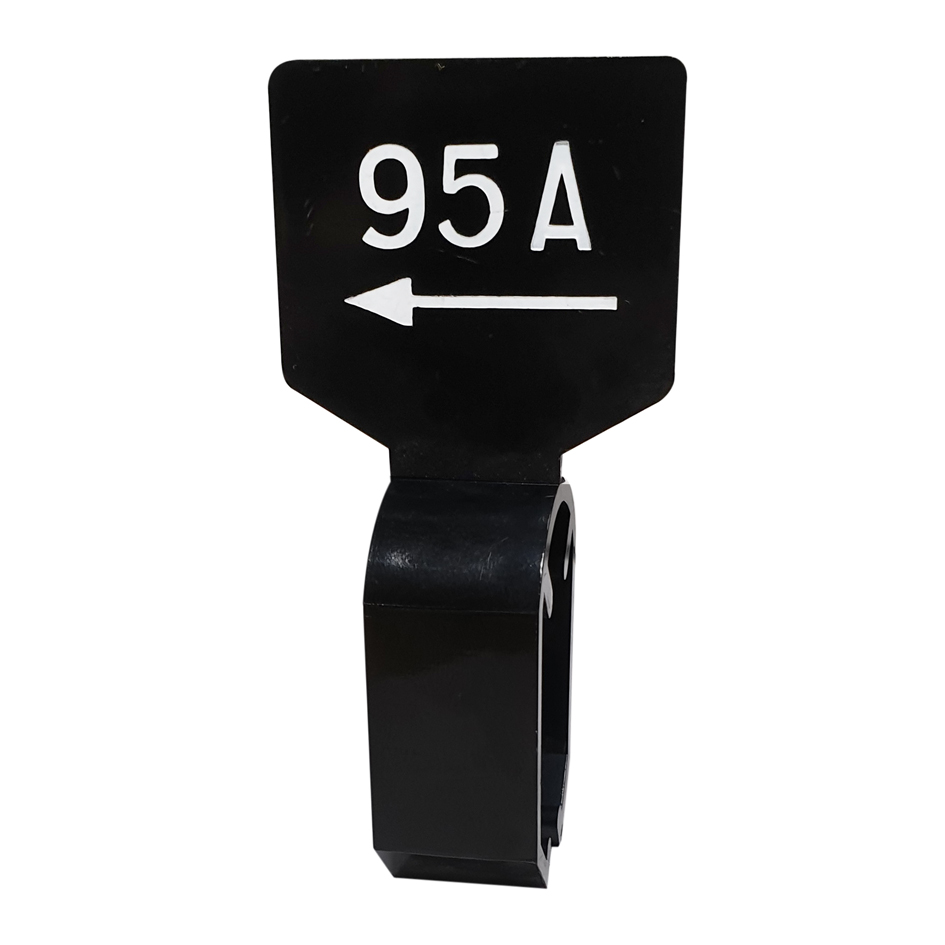 De maatbordjes zijn zwart en dubbelzijdig bedrukt met witte opdruk 95A.