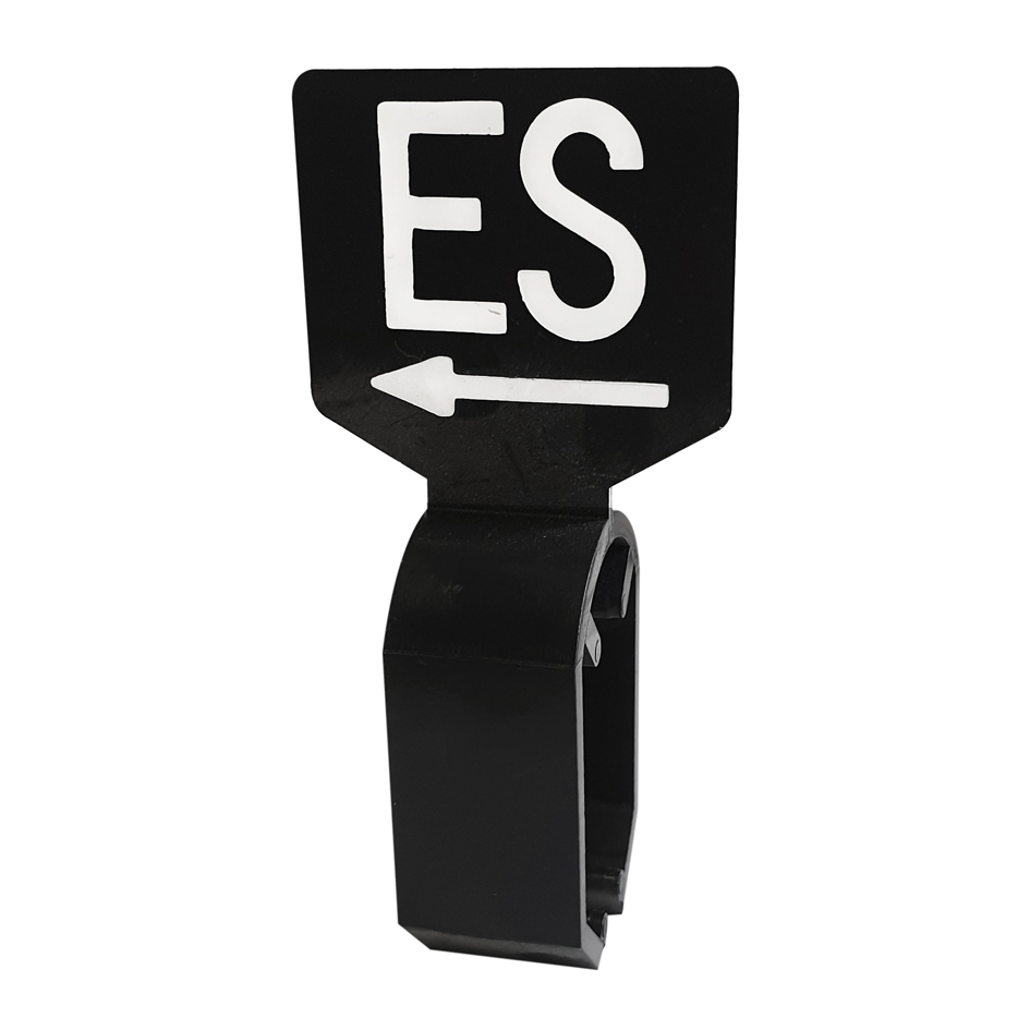 De maatbordjes zijn zwart en dubbelzijdig bedrukt met witte opdruk ES.