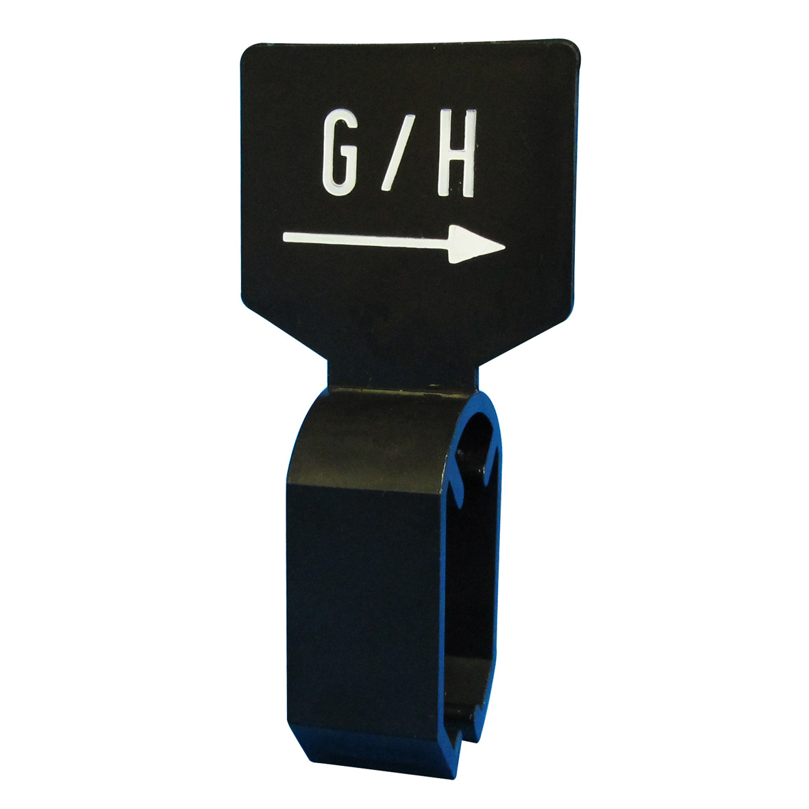 De maatbordjes zijn zwart en dubbelzijdig bedrukt met witte opdruk G/H.