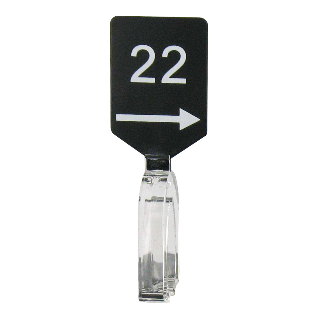 Maatbordje zwart wit met pijl maat 22.