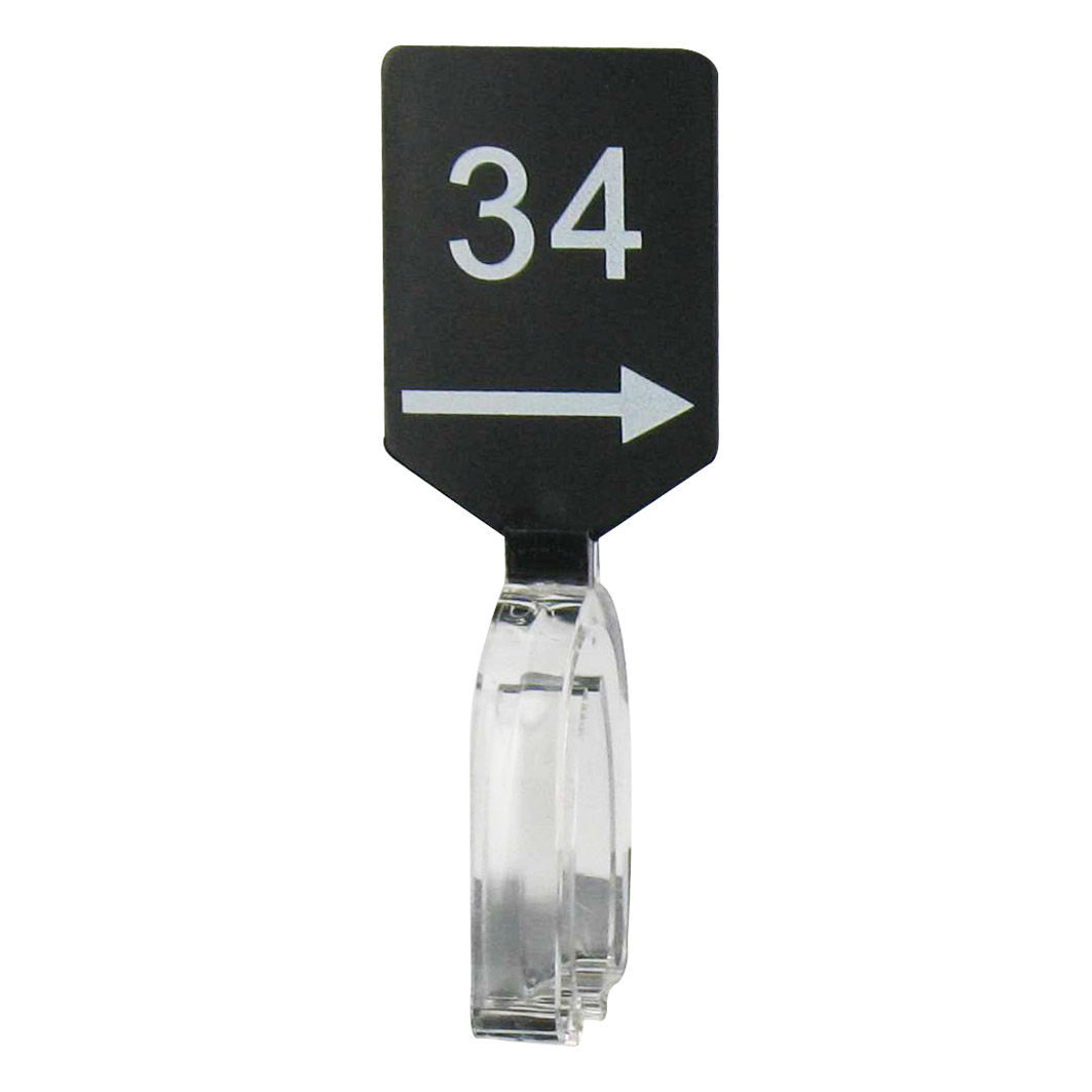 De maatbordjes zijn zwart met een witte opdruk 34 en zijn dubbelzijdig bedrukt.