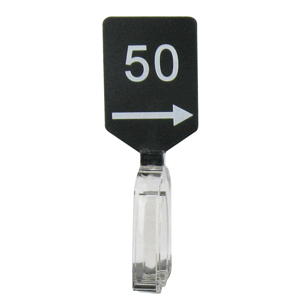 Maatbordje zwart wit met pijl maat 50.