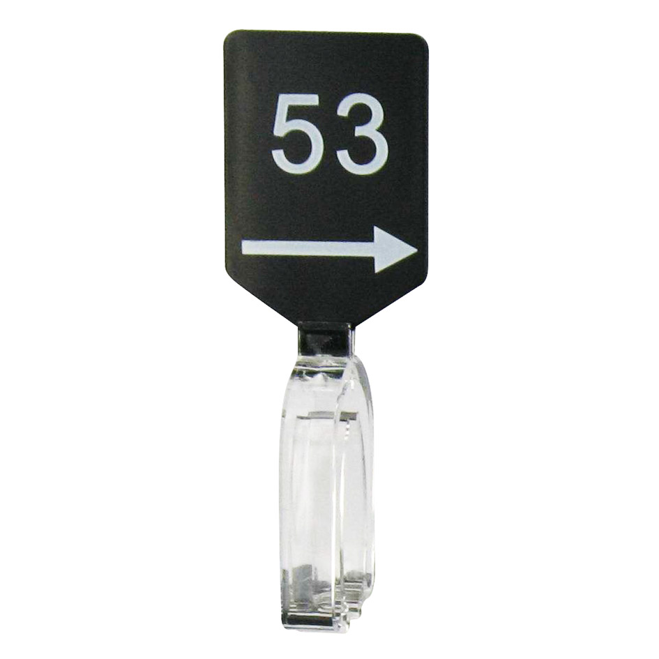 Maatbordje zwart wit met pijl maat 53.