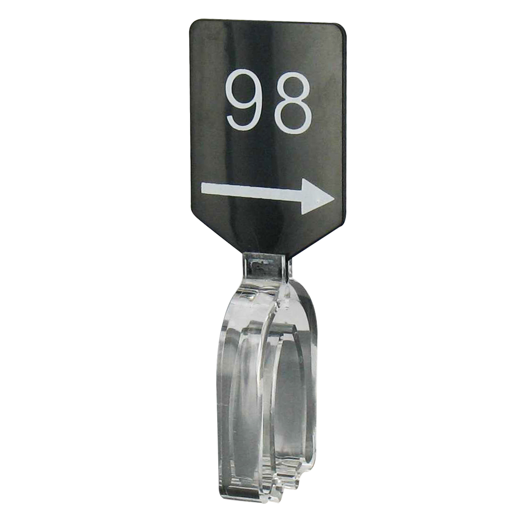 De maatbordjes zijn zwart met een witte opdruk 98 en zijn dubbelzijdig bedrukt.