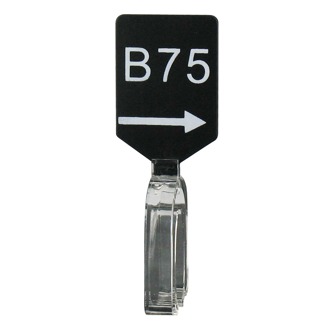 Maatbordje zwart wit met pijl maat B75.