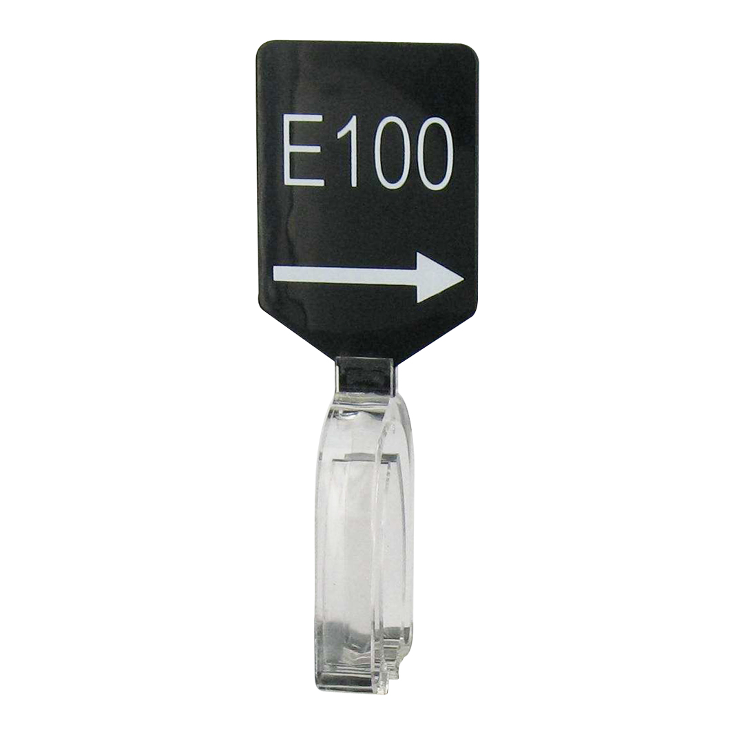 Maatbordje zwart wit met pijl maat E100.