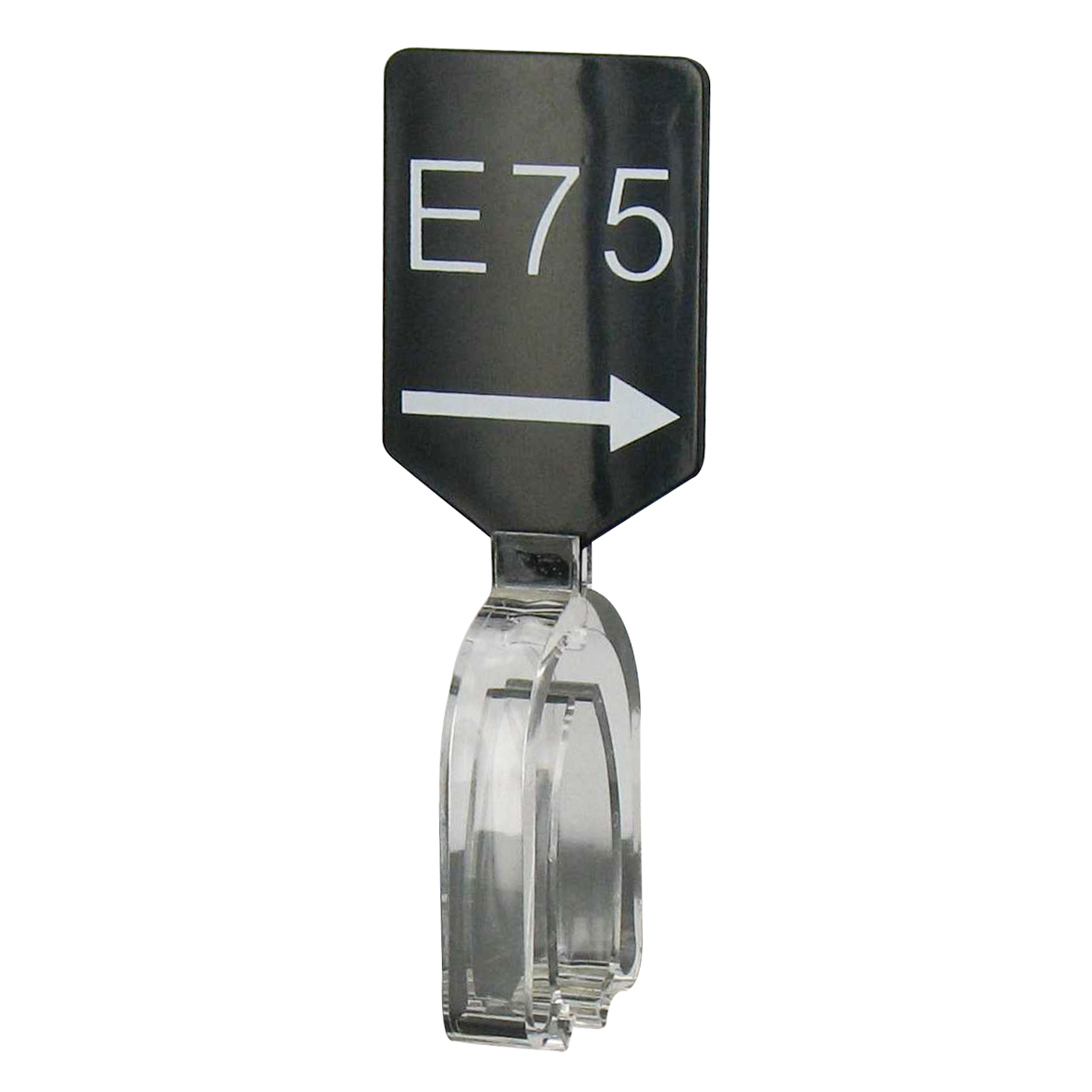 De maatbordjes zijn zwart met een witte opdruk E75 en zijn dubbelzijdig bedrukt.