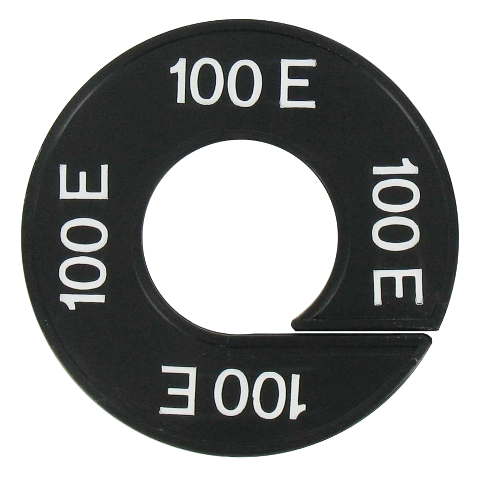 Maatschijf in het zwart met witte opdruk voor maat 100E.