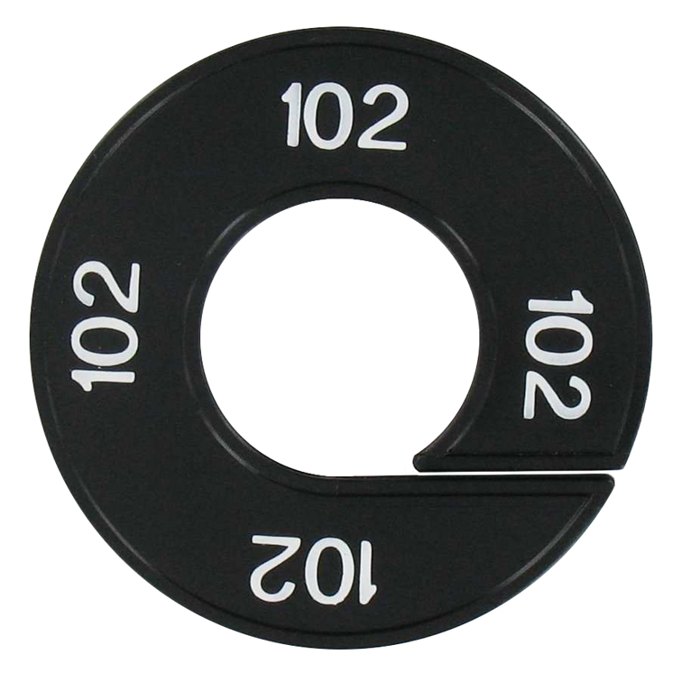 Maatschijf in het zwart met witte opdruk voor maat 102.