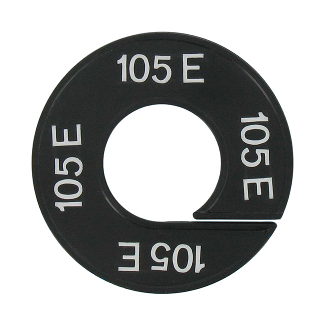Maatschijf in het zwart met witte opdruk voor maat 105E.