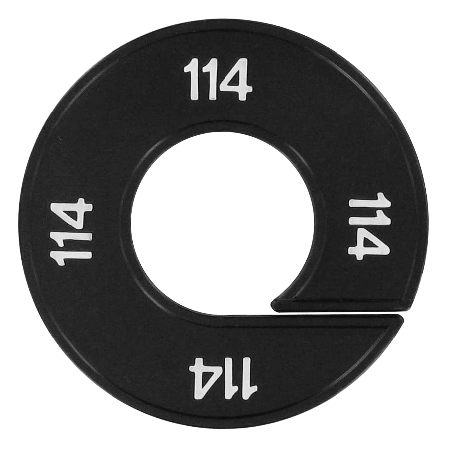 Maatschijf in het zwart met witte opdruk voor maat 114.