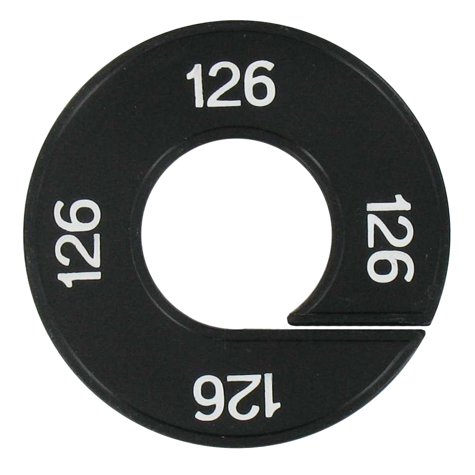 Maatschijf in het zwart met witte opdruk voor maat 126.